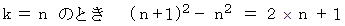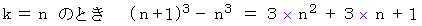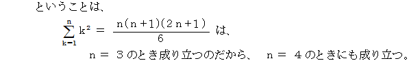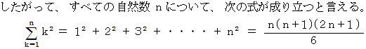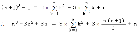 これを応用すると、 さきほどの平方数の和の公式を証明することができます。