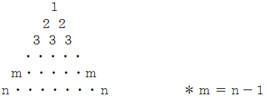 この数字のピラミッドを左右反転させて鏡面像を作ります。 ただし、 数字の文字は鏡面像にしていません。