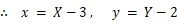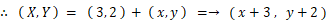平行移動をさせた後の円の方程式は、 平行移動をさせる前の円を、 x 軸方向に−3、y 軸方向に−2平行移動させた座標系 ( XY 座標系とします ) における円の方程式に等しくなっています。