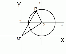 XY 座標系における x y 座標系の原点Oの位置ベクトルは次のように表されます。