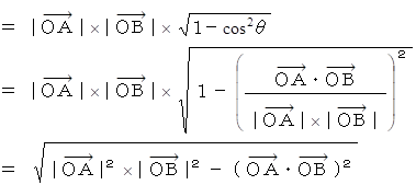 ОA と ОB のなす角をθとすると、 次のようになる。