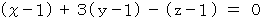 A ( 1,2,3 )、B ( 1,−1,1 )、C ( 3,1,2 ) を含む平面の方程式を(1)の方法で求めてみましょう。