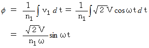 の入力側コイルに次の式で与えられる電圧を加えて、 交流電流を流します。