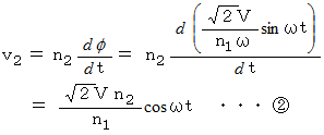 の出力側コイルには次のような「 ファラディーの電磁誘導の法則 」による「 誘電起電気力 」が生じます。
