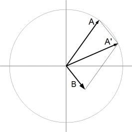 ベクトルA と ベクトルA’ は共に大きさが1で起点が原点にあります。ベクトルA に ベクトルB を加えることによって ベクトルA’ を作ることを考えます。もし ベクトルA’ が ベクトルA に限りなく近いときは、ベクトルBは大きさが限りなく0に近くて方向はベクトルAに対して垂直になります。このときのベクトルBを d B と表すことにしましょう。