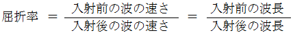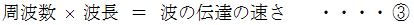 この式 と 波の基本公式 より、 波は伝わる媒体が変化しても振動数は不変であるということがわかります。