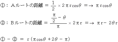 したがって、 一定の速さで移動するのだから、 Bルートの移動時間 が Aルートの移動時間 を決して超えることはない。