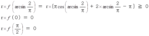 2つの地点の緯度をラジアンに換算した値を θ( 0 ≦ θ ≦ π/2 ) とすると、