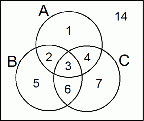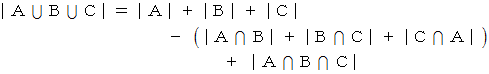 で表します。 次の式は、 交わり合っている3つの集合の包除原理を表しています。