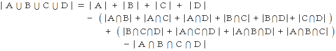 交わっている4つの集合の包除原理を次のようになります。