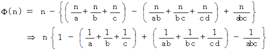 これを一般化して、 ある自然数について、 その自然数と互いに素でありその自然数を超えない自然数の数を求めるプログラムを十進BASIC で作ってみました。