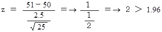 平均 50ml、 標準偏差 2.5/root(25) ml の正規分布の 95% 範囲内にあるはずだが、