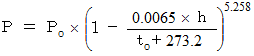 トリチェリの水銀柱を利用した気圧計を用いて同時に2か所で気圧を測定します。 標高 hm の山の山頂で測定した気圧を PhPa とします。 その山に一番近い海面上で測定した気圧を P0 hPa とします。 また、 その海面上の気温を t0 k とします。 すると、 次の式が成り立ちます。