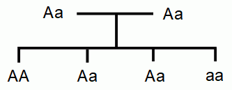 母親 かつ 父親 が ヘテロ接合型遺伝子( Aa )を持つ場合、 優性遺伝では 75% の確率で形質が発現し、 劣性遺伝では 25% の確率で形質が発現します。