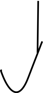 左図の直線は食道を表しています。 胃は立位の体の正面から見ると J の字をしています。 J の字の一番高いところが天井で、一番低いところが底であると考えてください。 胃の入り口は胃の天井にはなく、天井より少し下の上側の壁にあります。 胃カメラのモニター画面では、胃カメラの先端の屈曲側が上側になり、背屈側が下側になり、その上下に対して左側が左側になり、右側が右側になります。 |