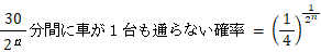 30分以内に車が 1 台も通らない確率は、