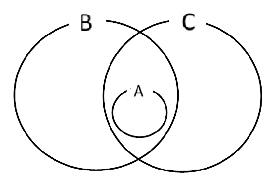 因果関係: A ならば B 非因果的相関関係: B と C の交わり