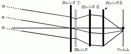 、 フィルム の位置は変わっていません。 また、 凸レンズ