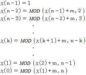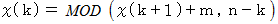 LET k = MOD ( k + m , j )