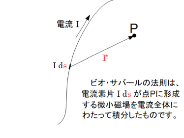 が流れているとき、 これに垂直な平面上で導体を中心とする半径