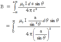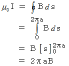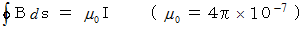 を閉じた曲線の全部分に沿って線積分すれば、 それは閉じた曲線の内部を貫く総電流の大きさになり、 次のように表されます。