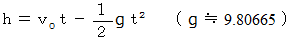 で真上に打ち上げたとき、t 秒後の高さ h m は次の式で与えられます。