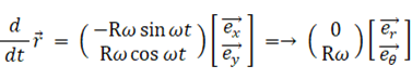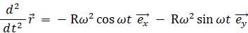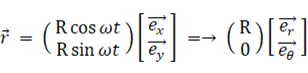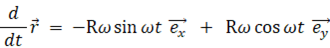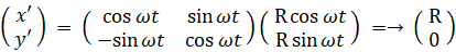 半径 R の円周を軌道とする角速度 ω の等速円運動を表す式は、位置ベクトル を用いて次のように表されます。