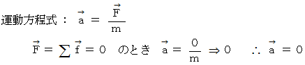 になるので、 加速度が生じない。」ということであり、 運動方程式では