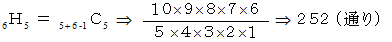 の配列関係の場合の数は、 一列に並べられた 5 + 6 − 1 個の椅子から