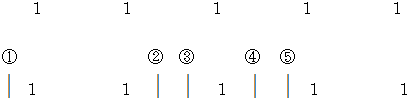 上のように仕切り棒が置かれたとき、 ボールの配分は次のようになります。