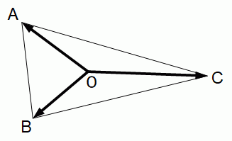 三角形ABCの重心が直交座標系の原点Оに重なるように置きました。