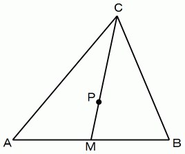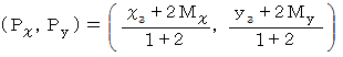 三角形の中線の交点である点P が三角形ABC の重心であることを利用して、 3角形の頂点 A,B,C の座標値をそれぞれ