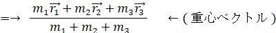 重心ベクトルは、複数の位置ベクトルの加重平均( 加重の対象はそこに存在する物質の質量 )を 質量の平均 で割ったものです。