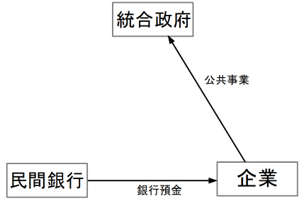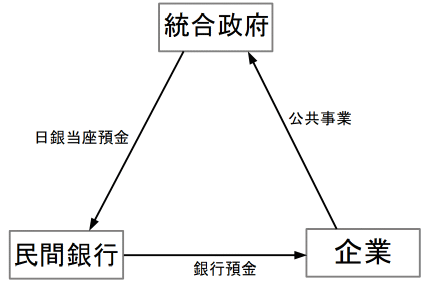 ※ 統合政府は、民間銀行の日銀当座預金に金額を打ち込みます。
