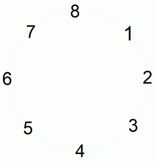 8−3 = 5 です。 3 から反時計回りに 5 ずつ移動した結果に等しくなっています。