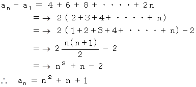 したがって、 階差数列の n 項 までの和は次のようになります。