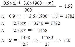 塩化ナトリウム( 食塩 )9g を蒸留水 991g に溶解すると、 0.9 % の塩化ナトリウムの水溶液ができます。 この液体はヒトの体液の塩化ナトリウム濃度にほぼ等しいので「 生理的食塩水 」と言われます。 生理的食塩水 と 3.6 % の塩化ナトリウムの水溶液( ほほ海水に等しい塩分濃度の液体 )とを混ぜ合わせて計 900g の液体を作ります。 これを2リットルの容器に入れて、 爆弾秤の上に乗せて重量を測定します。 爆弾秤とは、 一度重量を測れば、 それを最後まで自動記憶して、 もしその重量よりも小さくなると爆発する秤です。( ここでは、 水は蒸発しないものとします。)10ml の液体の塩化ナトリウム濃度を測定することのできる測定器があります。 爆発を起こさずに、 この液体が 生理的食塩水 と 3.6 % の塩化ナトリウムの水溶液 を 何対何の比 で混ぜ合わされたものなのか? 知るには、 どうすればいいでしょうか?