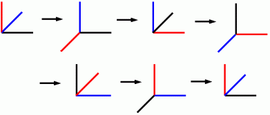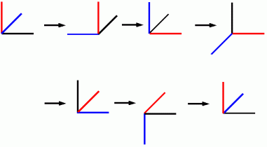 [A;−90] → [B;−90] → [C;−90] → [A;−90] → [B;−90] → ・ ・ ・ ・ と繰り返して操作していったときに、 最低何回目の操作でこの物体は元の姿勢に戻りますか?
