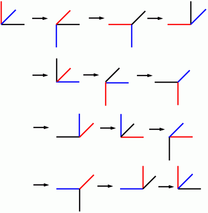 [A;90] → [B;90] → [C;90] → [A;90] → [B;90] → ・ ・ ・ ・ と繰り返して操作していったときに、 最低何回目の操作でこの物体は元の姿勢に戻りますか?