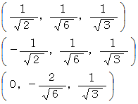 ] と表すことにします。最初に、 A,B,C をそれぞれ( 1,0,0 ),( 0,1,0 ),( 0,0,1 )の座標で表される位置にセットします。 これをこの物体の元の姿勢とします。