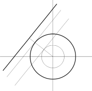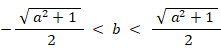 したがって、直線 y = a x + b が中心が原点に存在する半径1の円の内部を通過するためには、次の式が成り立てばよい。