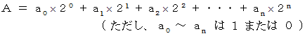 自然数 A は必ず次のような形に展開することができます。 これを 「 2進法展開 」 と言うことにします。
