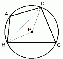 ある四角形が 外接円を持つ四角形 に属するならば、 その四角形は 向かい合う角の和がπラジアンの四角形 に属する。