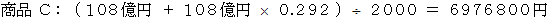 今、 商品A、 B、 C の生産販売の社会的平均が次の表のようであったとしましょう。