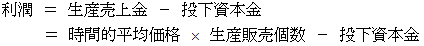 同一商品の需要供給均等下での価格を「 時間的平均価格 」と名づけることにします。 ただし、 まだ、 これが「 価格のコア 」ではありません。 すると、 利潤は次の式で与えられます。