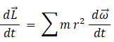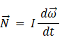 質点の回転中心からの位置ベクトル に 質点の運動量 を外積させると 運動量モーメント が得られます。 剛体内の微小区域の運動量モーメントの総和をとると、剛体の角運動量 が得られます。 剛体の角運動量 を時間で微分すると トルク が得られます。( トルクの定義 ) それは、角加速度 と 慣性モーメント とをかけ合わせたものです。