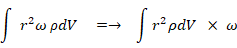 運動量モーメントは、 位置ベクトル × 運動量 ですから、剛体内の微小区域の運動量モーメントは次のようになります。