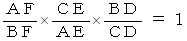 よって、 チュバの定理の逆より、 AD BE CF は一点で交わる。