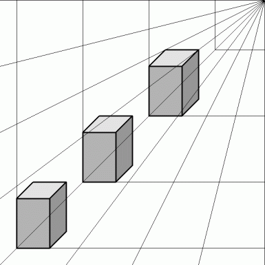 遠近法によって、 合同な図形たちが、 右上のものほど大きく見えます。