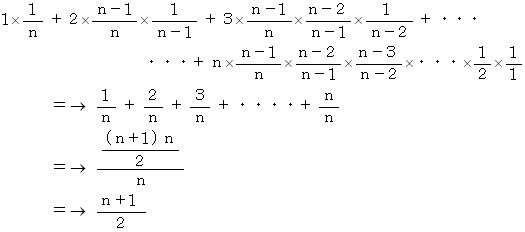 n 枚めくったときに 1 が出てきたときに n 点得るとします。 すると、 その期待値は次のようになります。